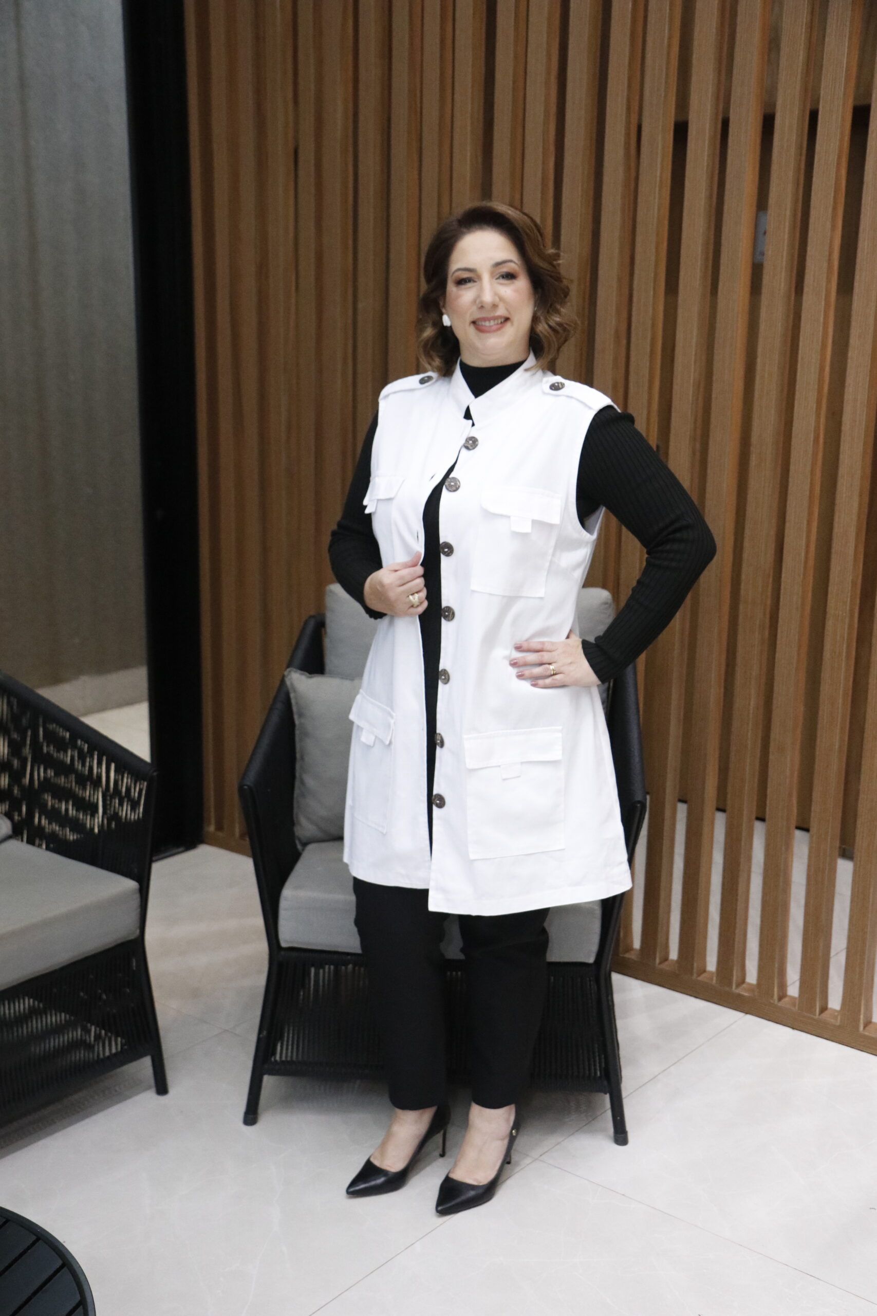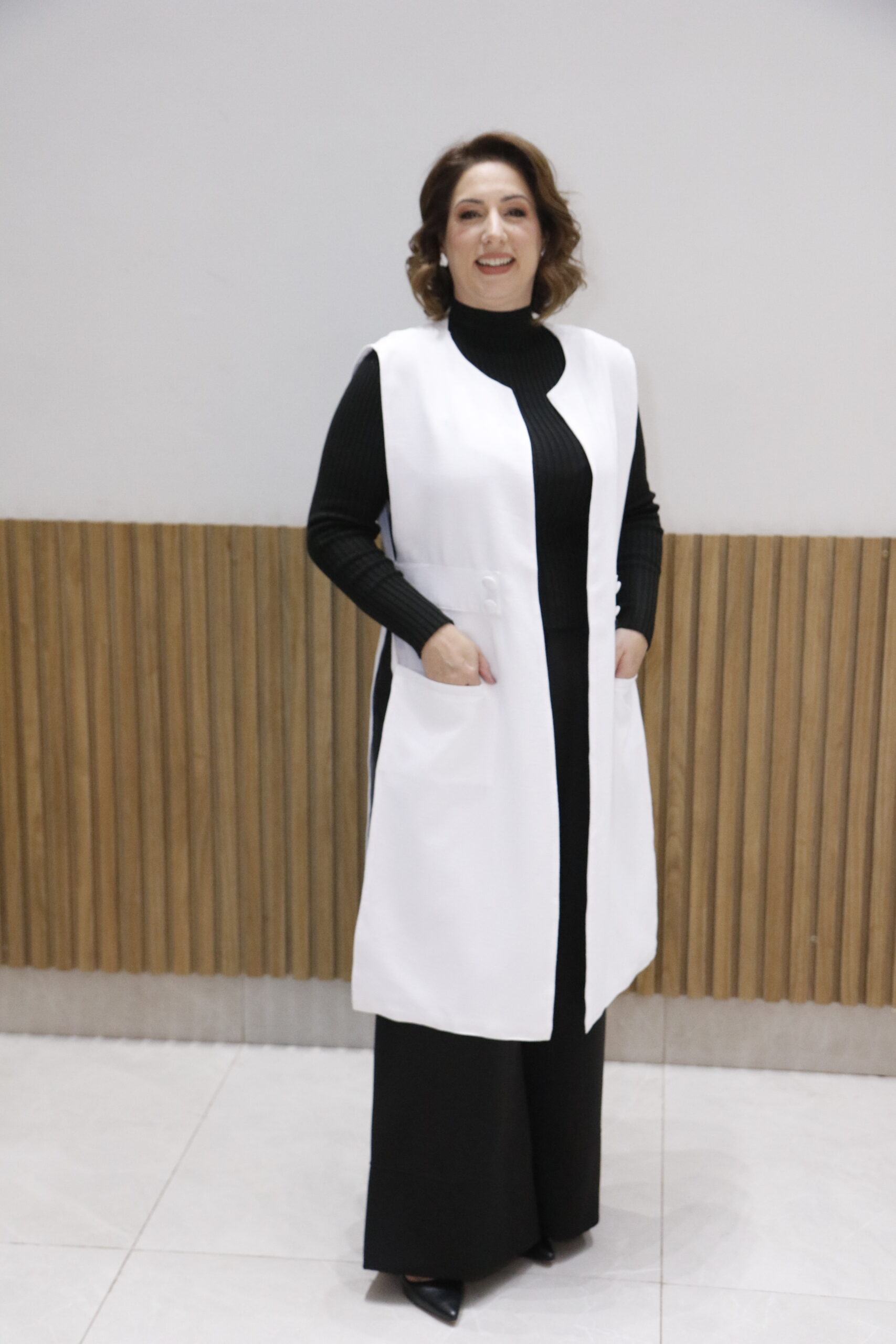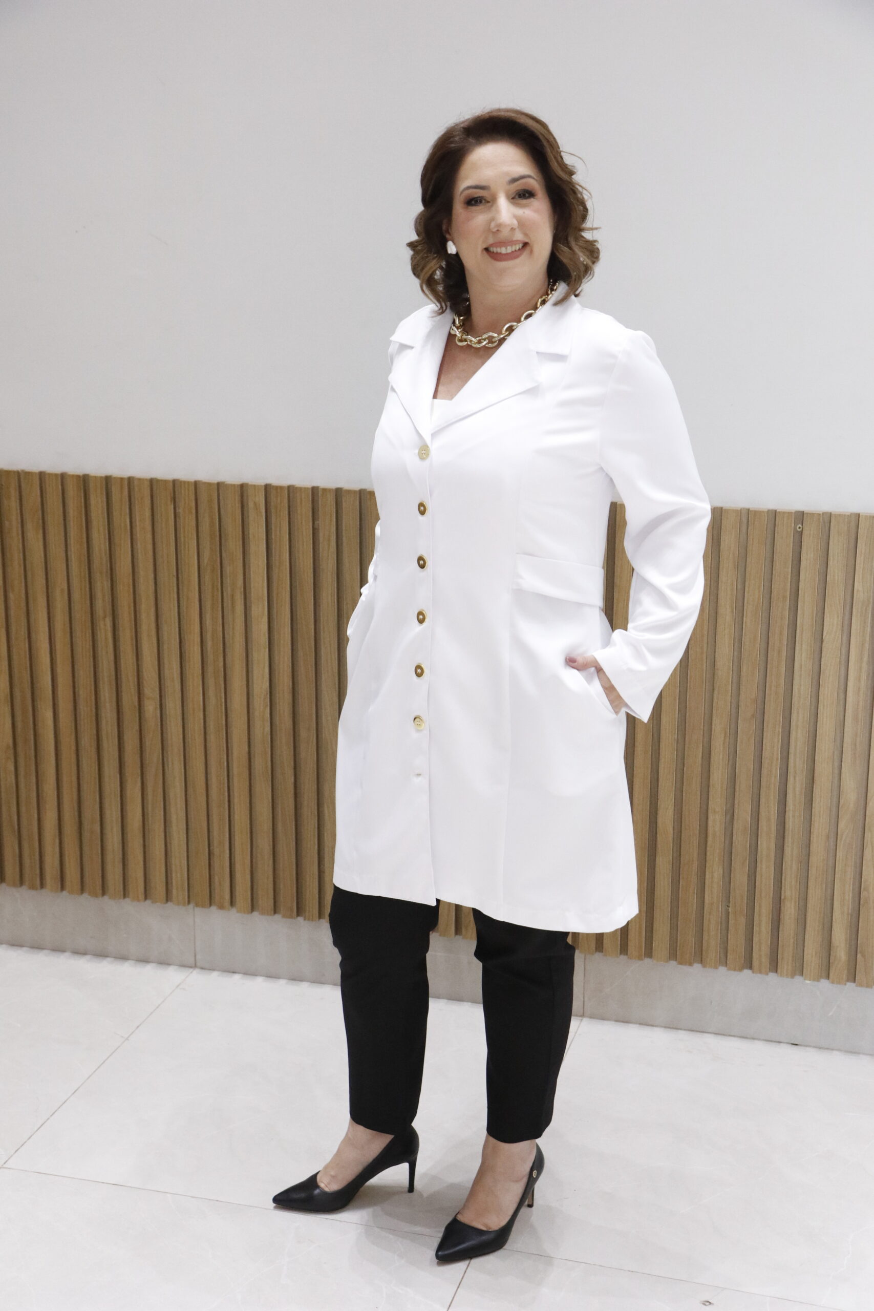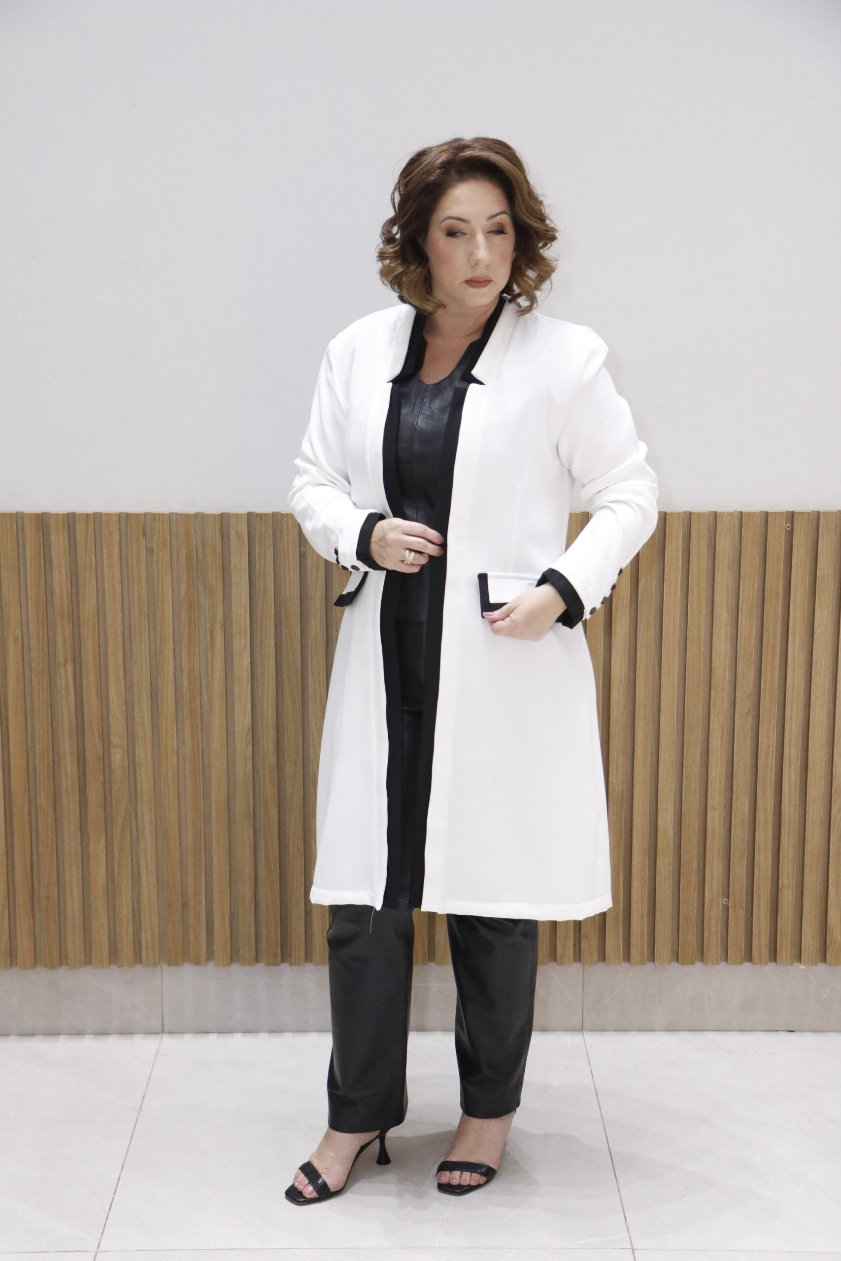 O Jaleco representa as qualidades de uma mulher dinâmica e ao mesmo tempo elegante e sofisticada, destacando sua personalidade com estilo e charme.